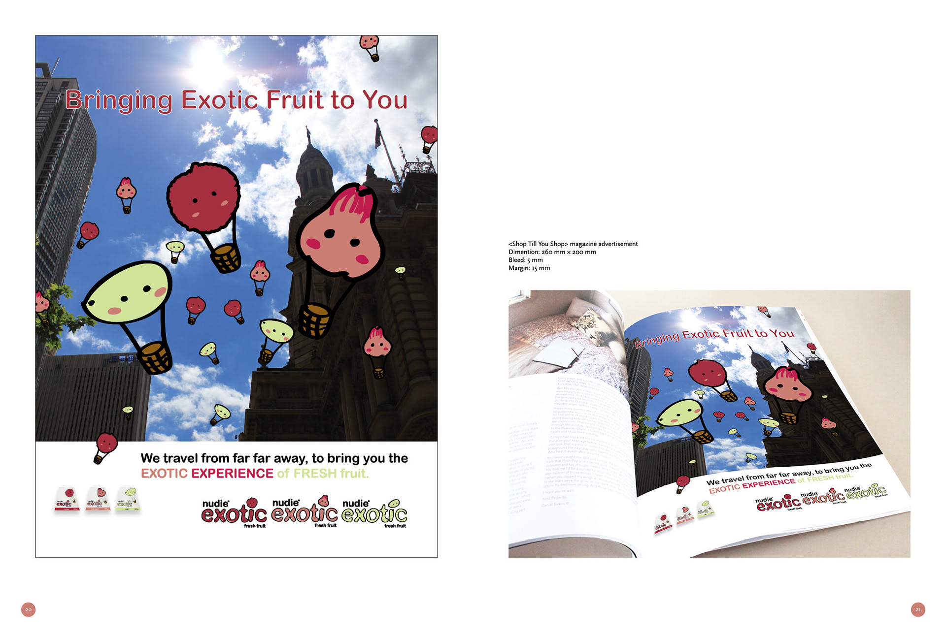 Nudie exotic provides fresh fruit daily for people to live with a healthier lifestyle. The 3 products will be lychees, dates and rose apple. These 3 exotic fruits are not often sold in the market, which will be one of the unique selling points for the sub-brand. The branding for Nudie Exotic is attempting to maintain the tone and feel of the current branding of Nudie. The personality of Nudie is fun, natural, simple. The target market is same as Nudie, from 20 to 45 years old age group, mainly female, business people, up market.